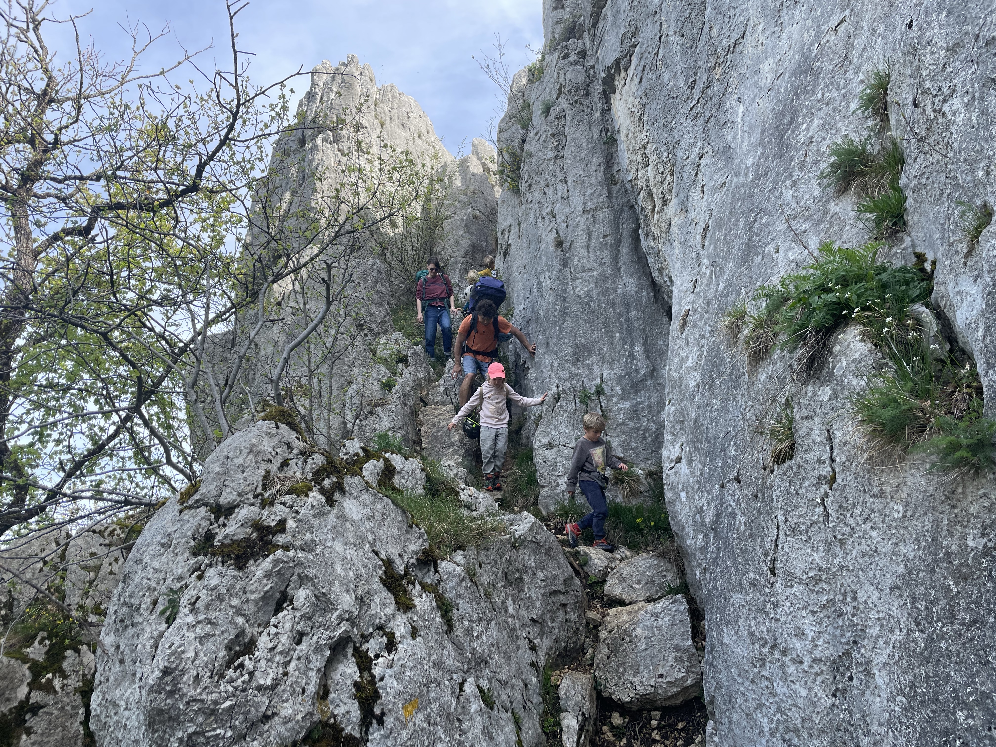 „Am Anfang war ich überrascht“, meinte Paul, „dass ihr immer noch so ausseht, wie beim letzten Mal“. Aber als ich eines Abends Erinnerungsfotos der vergangenen 11 Jahre zeigte, meinte Paul, dass wir auf den Bildern doch um einiges jünger aussehen. Trotz dieser Einsicht folgten acht spritzige Tage, von denen wir sechs boulderten und einen Tag in „Paris, der Stadt der Diebe“ verbrachten (Zitat von Rosa, nachdem sie Handyräuber und Trickbetrüger beobachtet hatte). Paul und April hingen jeweils auch noch einen Tag auf der Toilette, weil sie sich einen Käfer eingefangen hatten. Besonders schön war unser gelber Parcours in Rocher Cailleau, bei dem alle Kinder mitmachten. Überhaupt haben uns die Kinder wieder einmal gezeigt, wie man vermeintliche Hürden richtig meistert. Trotz Sprachbarriere spielten sie von morgens bis abends, Ivan legte ein Deutsch-Englisches Wörterbuch an und die überlebenswichtigen Begriffe waren schnell gelernt (z.B. hide and seek freeze tag).